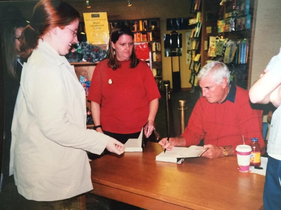 Here is a picture of me at the first book signing I attended and obviously I’m not a fan of the author at all. However, the book was fascinating. Also, in case you are concerned about safety - no chairs were thrown at this event.