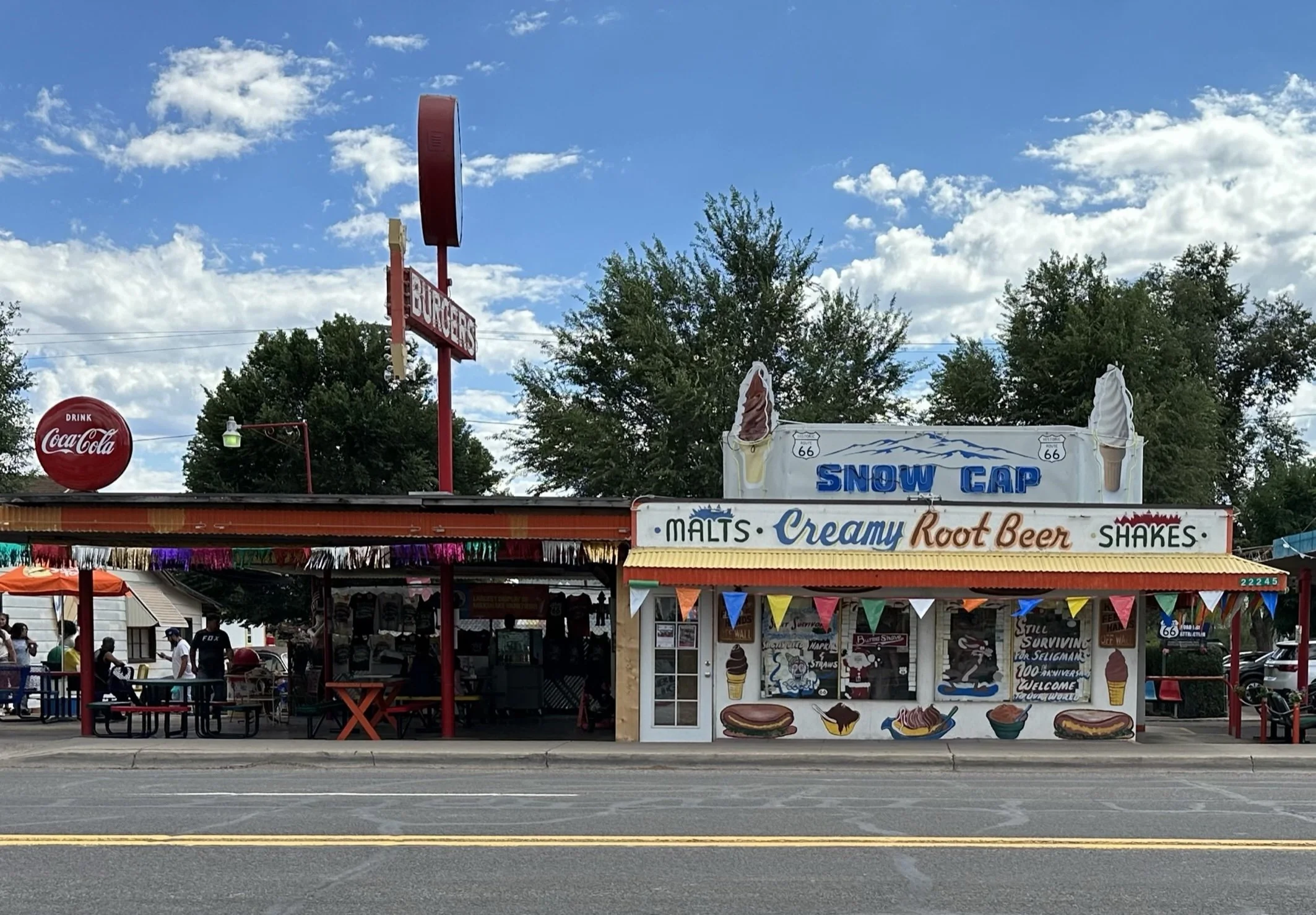 Since we were getting hungry we decided to grab a bite to eat and the Snow Cap Drive-In which was great. With vintage cars and a patio to enjoy - we ordered burgers and of course a snow cone which proved to be very messy. The people who worked there were super friendly and seem to have quite a great sense of humor as many of the cars have googly eyes painted on the windshields.