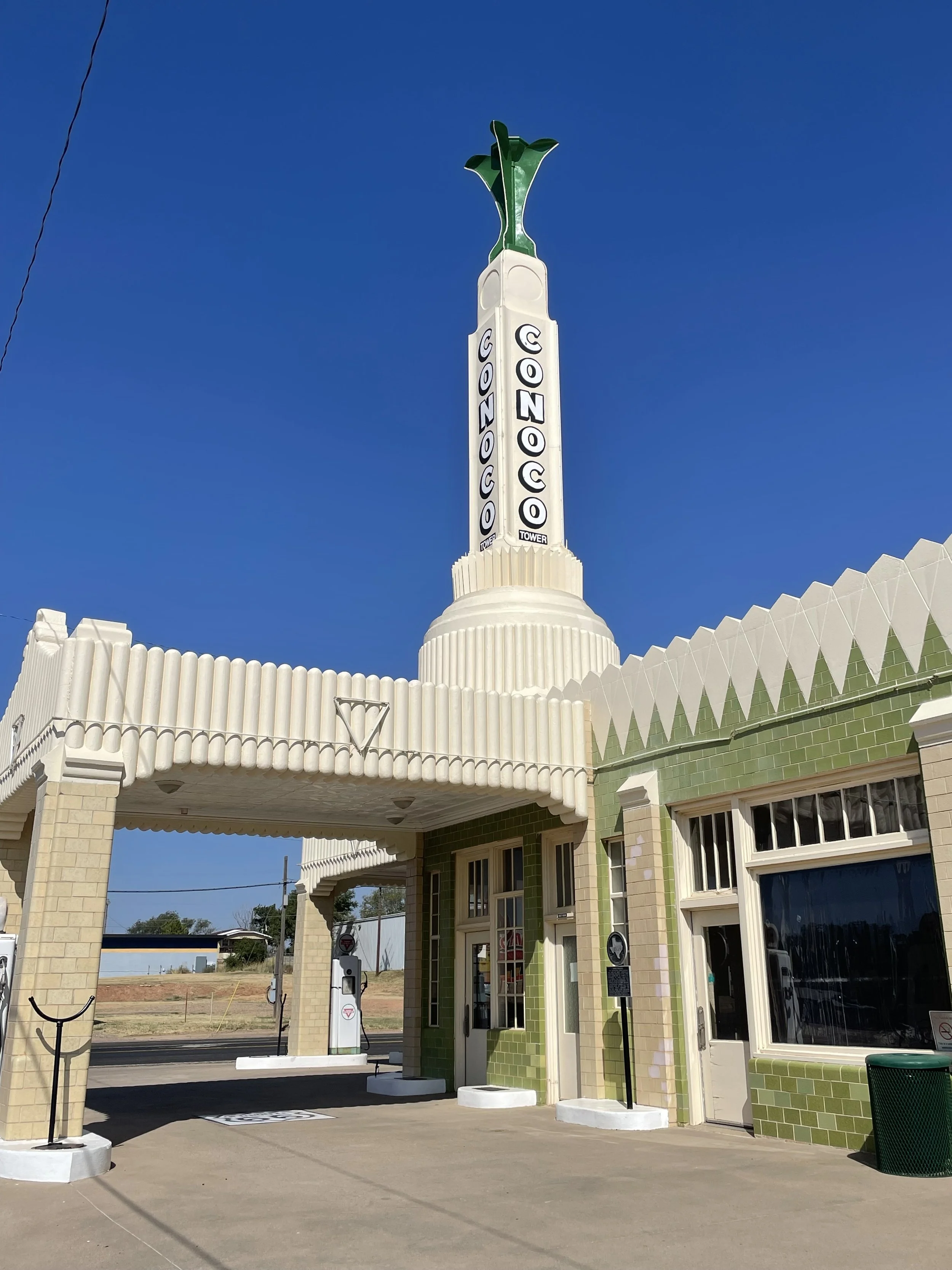 Our last stop in Texas on Route 66 was the fitting Conoco Tower Station - a classic art deco homage to yesteryear. This is a photographers dream as there is so much to capture in the building. The detail of the architecture is captivating. There is also a U-Drop-Inn Cafe that looked really great, but unfortunately it was closed when we visited. Also, interesting - in back were a handful of electric charging station for any EVs driving on Route 66.