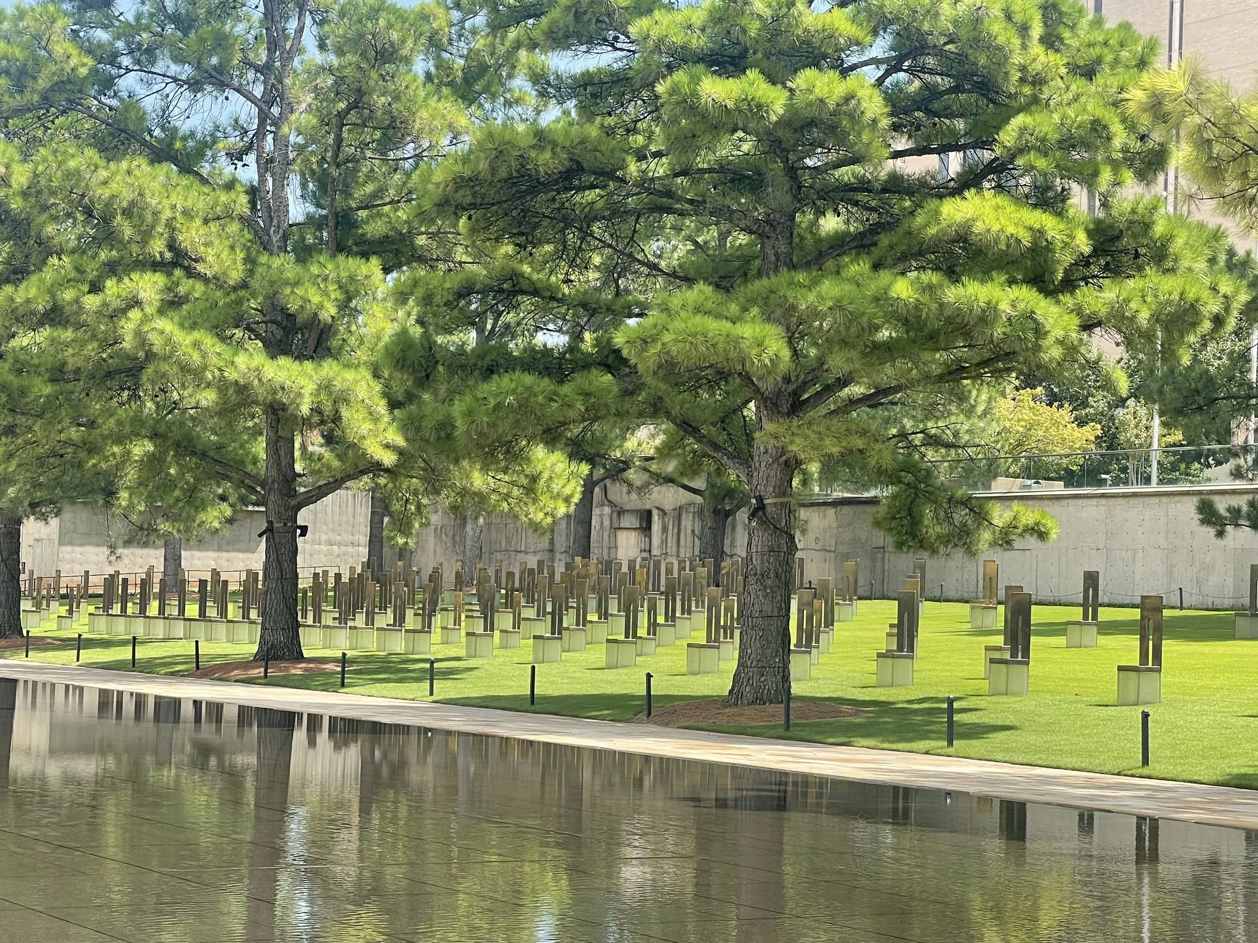 Route 66 passes through Oklahoma City and one of the stops that was most meaningful to us, was the memorial to the 1995 Oklahoma City bombing of the Alfred P. Murray Federal Building which killed 168 people. This was an event that both Sean and I vividly remember experiencing in real time when it happened. The memorial is beautifully done with chairs representing each of the victims and a reflecting pool which is encompassed in the parameter of the former building. There is a museum that we would have liked to see but because of Jack and Charley we opted to forgo the museum and save that for a possible return trip.